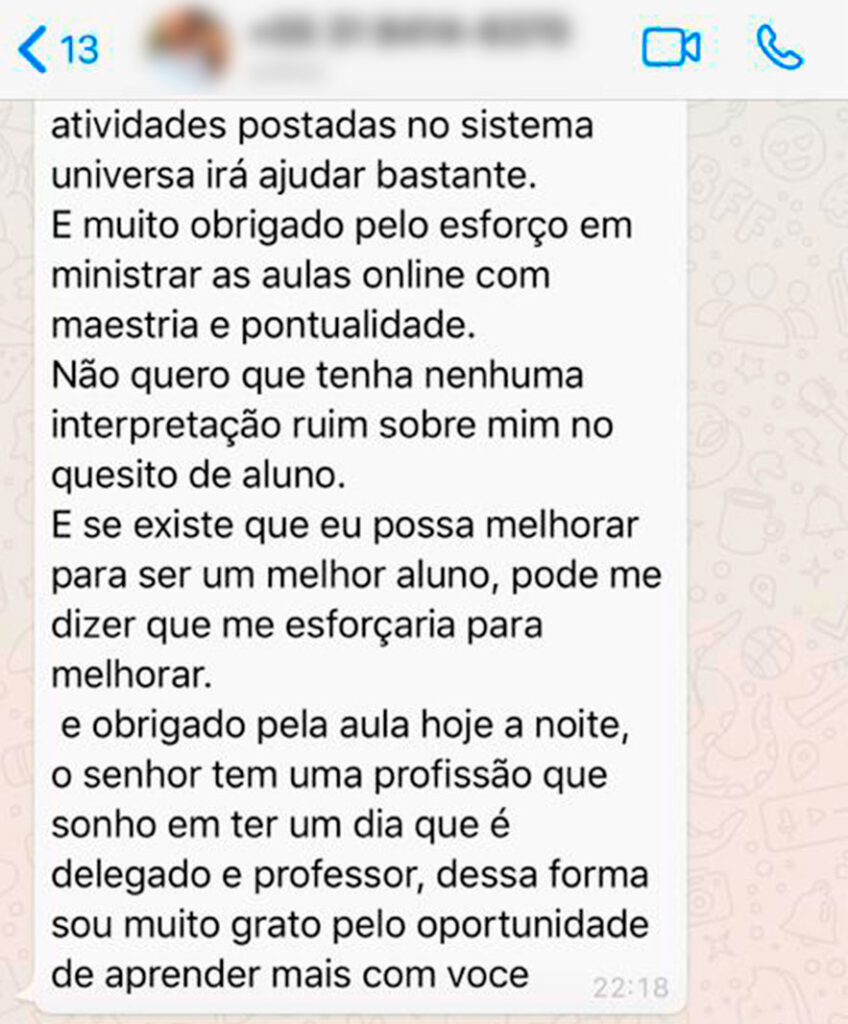 Conquistei aprovação em vários concursos e processos seletivos, incluindo Delegado de Polícia, Exame da OAB, Advogado Autárquico, Oficial Judicial, Técnico do TRT/MG, Técnico do MPU e Técnico Legislativo da Câmara Municipal de Belo Horizonte. Além disso, obtive aprovação em processos seletivos internos na Polícia Civil de Minas Gerais e seleções para lecionar em cursos preparatórios.