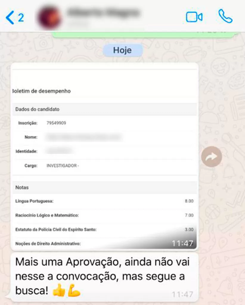 Conquistei aprovação em vários concursos e processos seletivos, incluindo Delegado de Polícia, Exame da OAB, Advogado Autárquico, Oficial Judicial, Técnico do TRT/MG, Técnico do MPU e Técnico Legislativo da Câmara Municipal de Belo Horizonte. Além disso, obtive aprovação em processos seletivos internos na Polícia Civil de Minas Gerais e seleções para lecionar em cursos preparatórios.